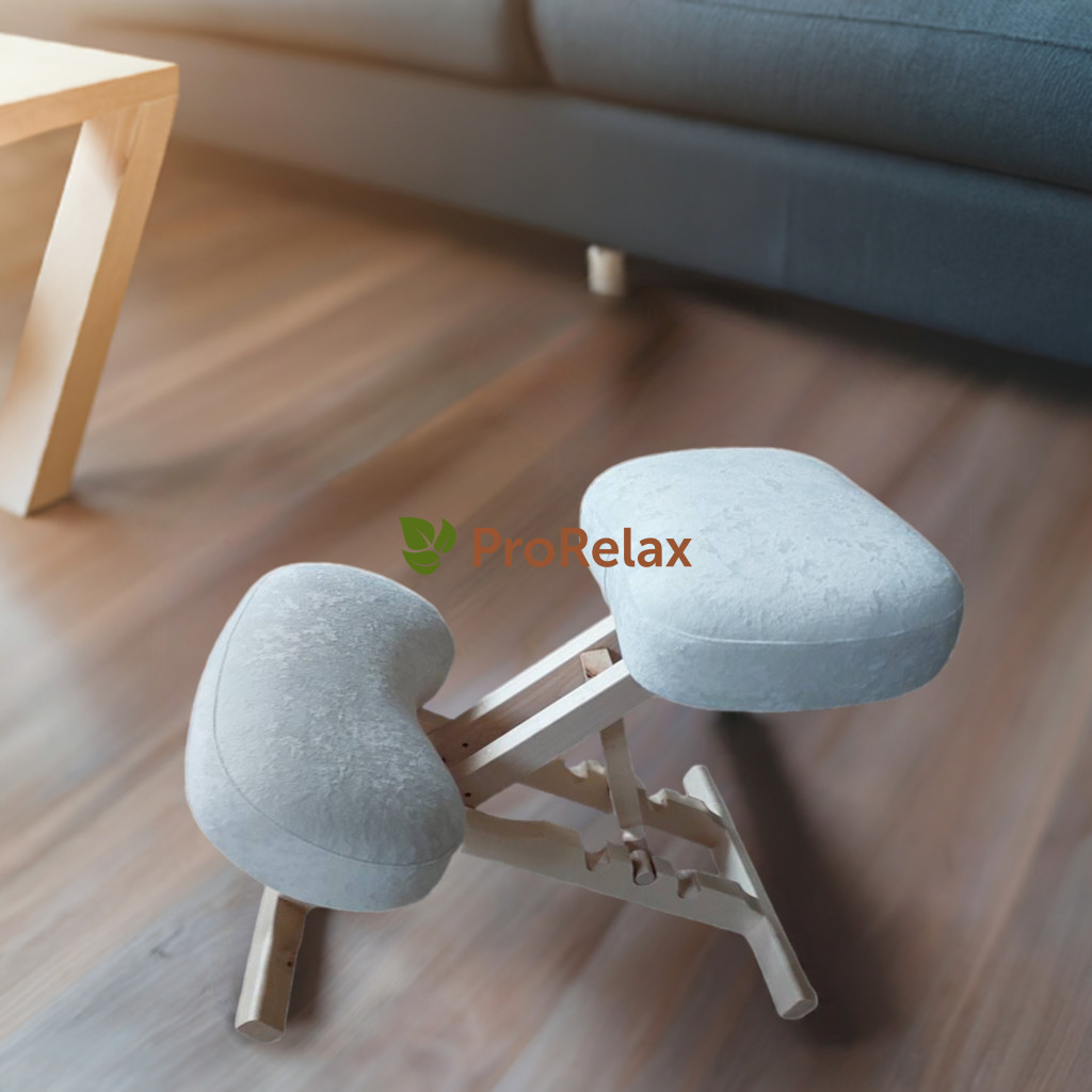 Эргономичный коленный стул PR_016 от ProRelax из натурального бука с премиальным велюровым покрытием.