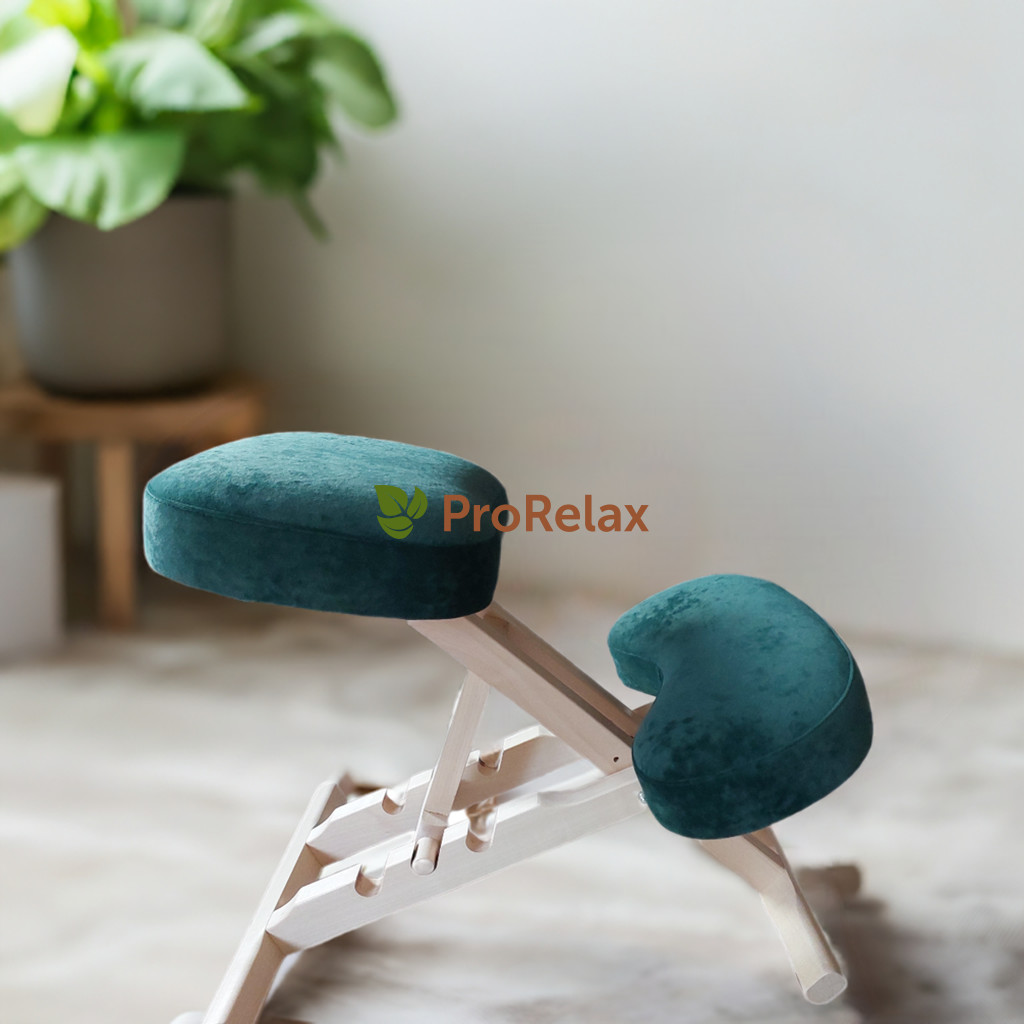 Эргономичный коленный стул PR_016 от ProRelax из натурального бука с премиальным велюровым покрытием.