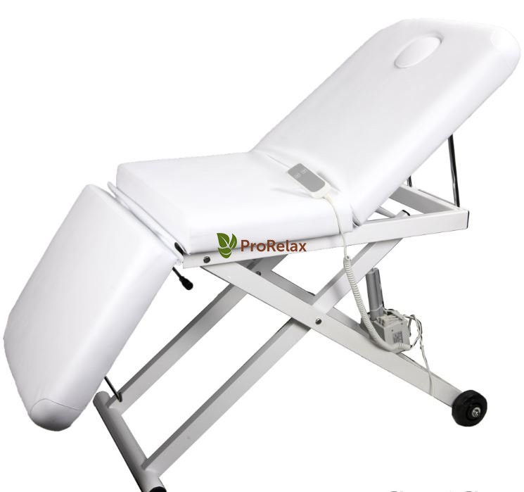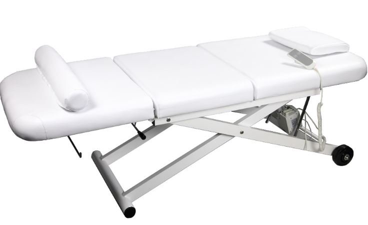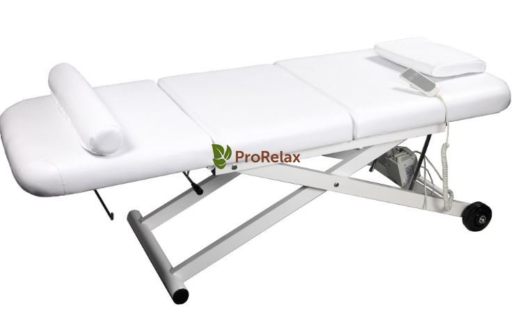 Кушетка для массажа устойчивая, широкая и комфортная, оснащена одним электромотором, регулировка по высоте с помощью пульта.