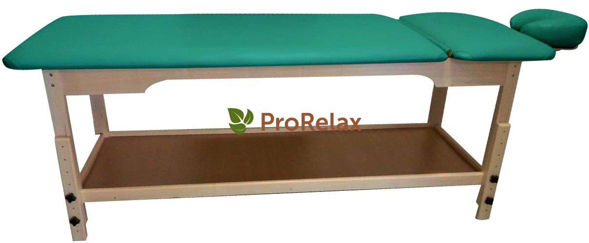 Массажная кушетка оснащёна полкой для полотенец, простыней и других принадлежностей, необходимых мастеру во время процедуры массажа.