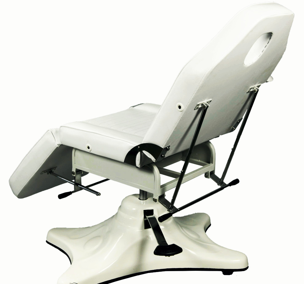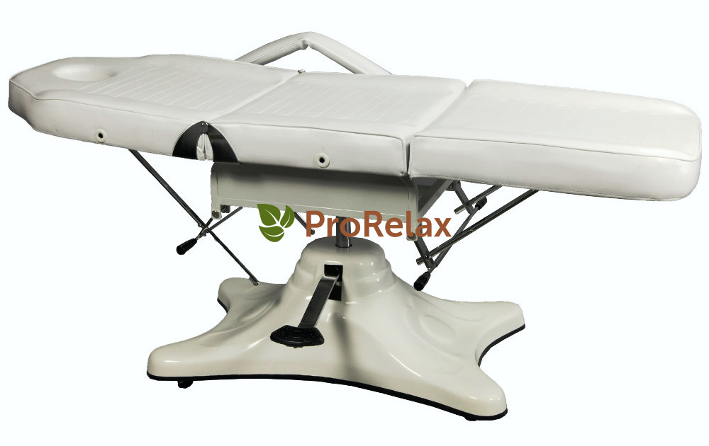 Более сложная конструкция косметологических кушеток – это оснащение гидравлической регулировкой. Специалист, в этом случае, не прилагает особых усилий для изменения положения кушетки во время процедуры. За него это сделает гидравлический привод.