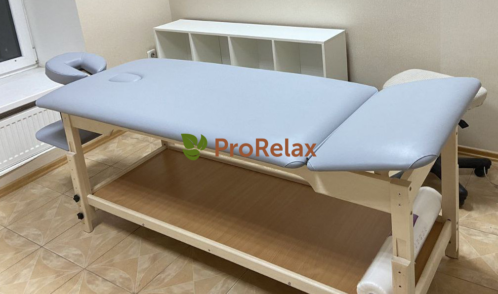 Модель PR_007P представляет собой стационарный массажный стол с подголовником в салон красоты или санаторий, клинику и т.д.