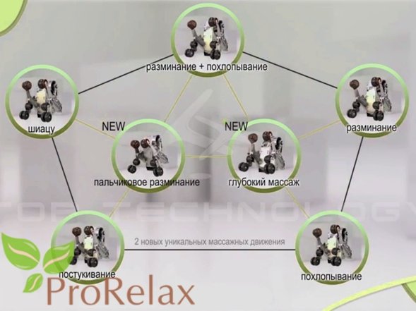 | Области массажа: | Затылок, шея, плечи, спина, ягодицы, бедра, голени, стопы, руки |