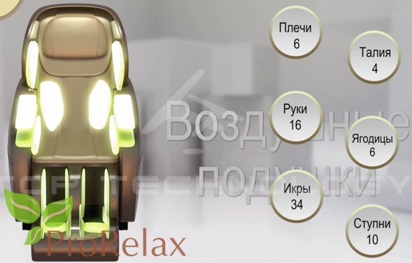Максимальное количество массажных подушек, которое только возможно! Они будут вас обволакивать, сжимать, кресло постепенно и очень деликатно воспроизводит программу вытягивания. Вы забудете, что сидите в массажном кресле. Оно настолько комфортное, что вы почувствуйте себя в руках профессионалов.