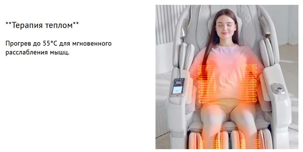 Усовершенствованный модуль позволяет добиться максимальной эффективности массажа. Благодаря прогреву до 55°C мышцы расслабляются быстрее, а массаж становится глубже и комфортнее.