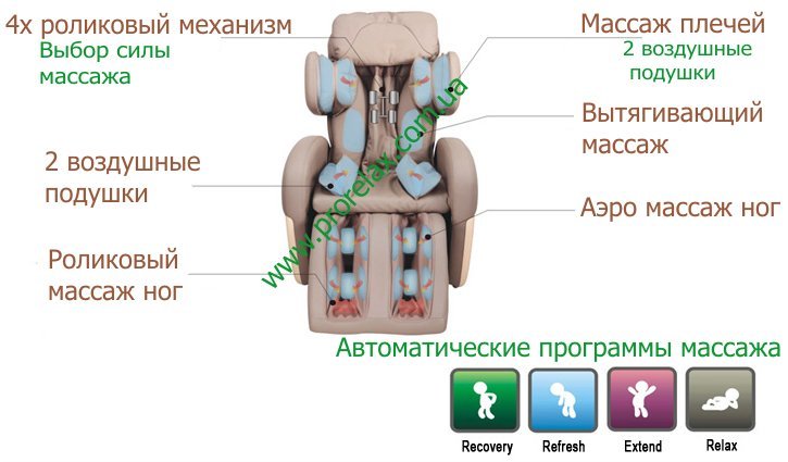• Аэро подушки массируют бедра, голени,плечи.