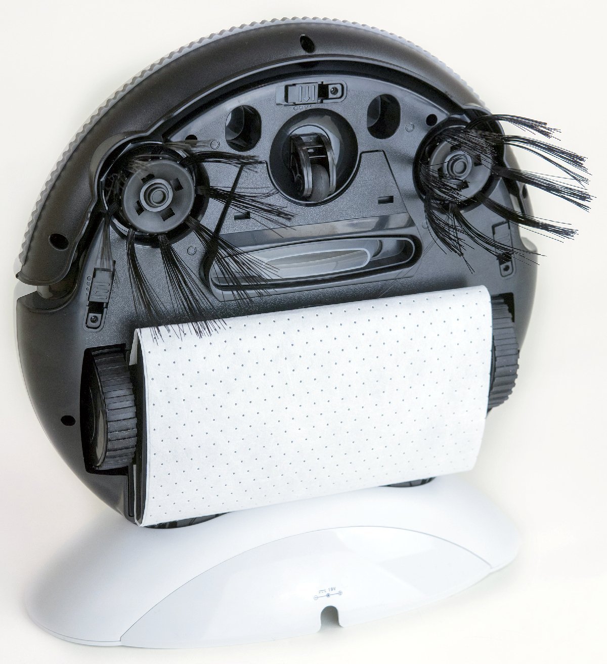 За счет маленьких размеров и крутящихся щеточек, робот пылесос способен «выметать» и собирать пыль, мусор из-под плинтуса, батареи, а так же маленьких щелей в паркете или плитки, т.е. из тех мест, в которые не может «зайти» тряпка и большая щетка обычного пылесоса.