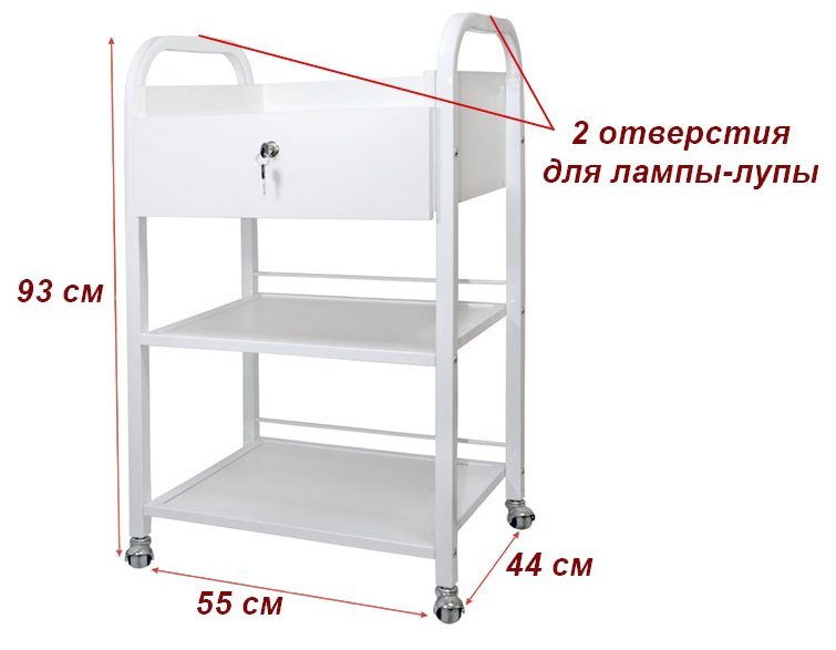 Во-первых, тележка косметологическая для инструментов оборудована несколькими полками, которые позволяют мастеру удобно расположить все необходимые инструменты и средства.
