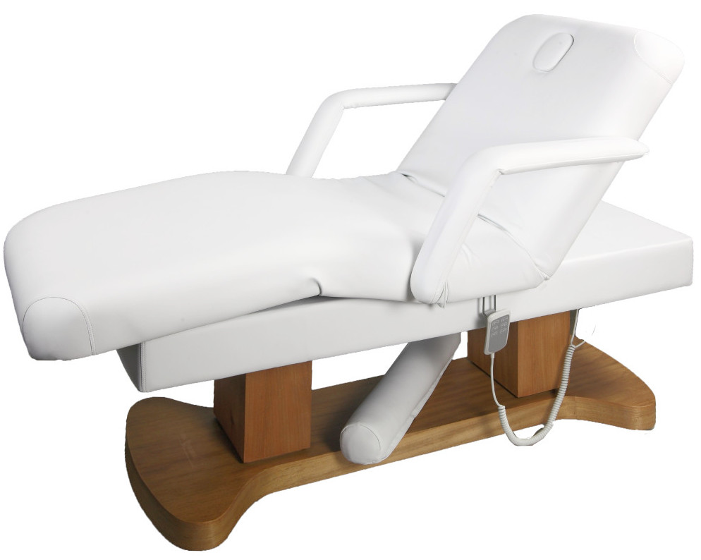 Электрические кушетки. Это дорогостоящий вариант, но для этого у них есть много «за». Главное – это элетропривод, который позволяет менять не только высоту , а и ее нижнюю и верхнюю частей. Главное, что такие изменения специалист проводит, не причиняя никакого дискомфорта пациенту. Часто они оснащены разными количествами моторов, что сказывается на их возможностях, на скорость передвижения, бесшумность, надежностью и продолжительностью их срока службы.