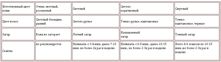 Эти данные приблизительные и зависят от типа кожи, мощности солярия и некоторых других факторов.