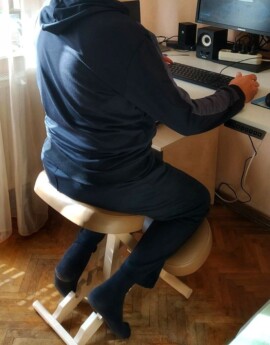 Стул получил, уже сижу пользуюсь) Первые впечатления, очень аккуратно и качественно все сделано до таких мелочей ,что даже скобки потрудились забить аккуратненько, давно такого подхода не встречал. Кожзам на ощуп солидный, сразу после распаковки на это внимание обращаешь. Вобщем после распаковки одни приятные впечатления. Может по мере использования через месяц два отпишу. По посадке пока такие впечатления. Угол сидушки удобный, не слишком маленький и не слишком большой. За счёт этого нагрузка на колени совсем небольшая даже в верхнем положении, при сохранении прогнутости в пояснице. Но сам он не заставляет сидеть правильно, он помогает и даёт возможность, понял что нужно себя приучить класть таз с бедрами параллельно наклону сидушки) Если для работы дома, то есть очень приятный бонус у кожзама на мой взгляд, за счёт силы трения кожи бедер о кожзам можно вообще полностью снять нагрузку с колен. За счёт того что размер стула высокий + установка сидушки на максимальном делении – получается разогнуть колени побольше, снановиться намного комфортнее.