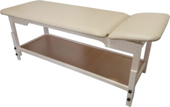 Масажний стіл оснащений полицею для рушників, простирадлом та іншого приладдя, необхідним майстру під час процедури масажу.