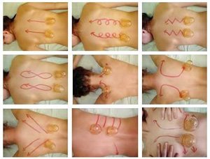 При остеохондрозе позвоночника проводятся скользящие движения в направлении от поясницы к шейному позвонку. Следует уделять особое внимание парентеральным зонам на расстоянии 2-3 см от остистых отростков позвоночника. Проводятся прямолинейные движения, при этом, двигать банку следует таким образом, чтобы перед ней шла складка кожи.