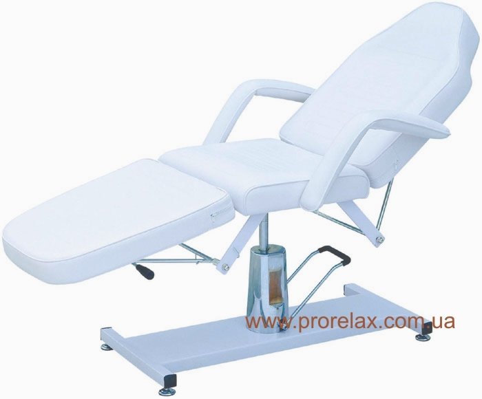 Бывают также 2-х или 3-х секционными, высота верхней и нижней части кушетки регулируется в ручную, а вот главное отличие от предыдущего вида, это регулировка высоты самой кушетки с помощью гидравлического подъёмника. Подъем осуществляется нажиманием на педаль, не причиняя беспокойства клиенту, лежащему или сидячему на кушетке.
